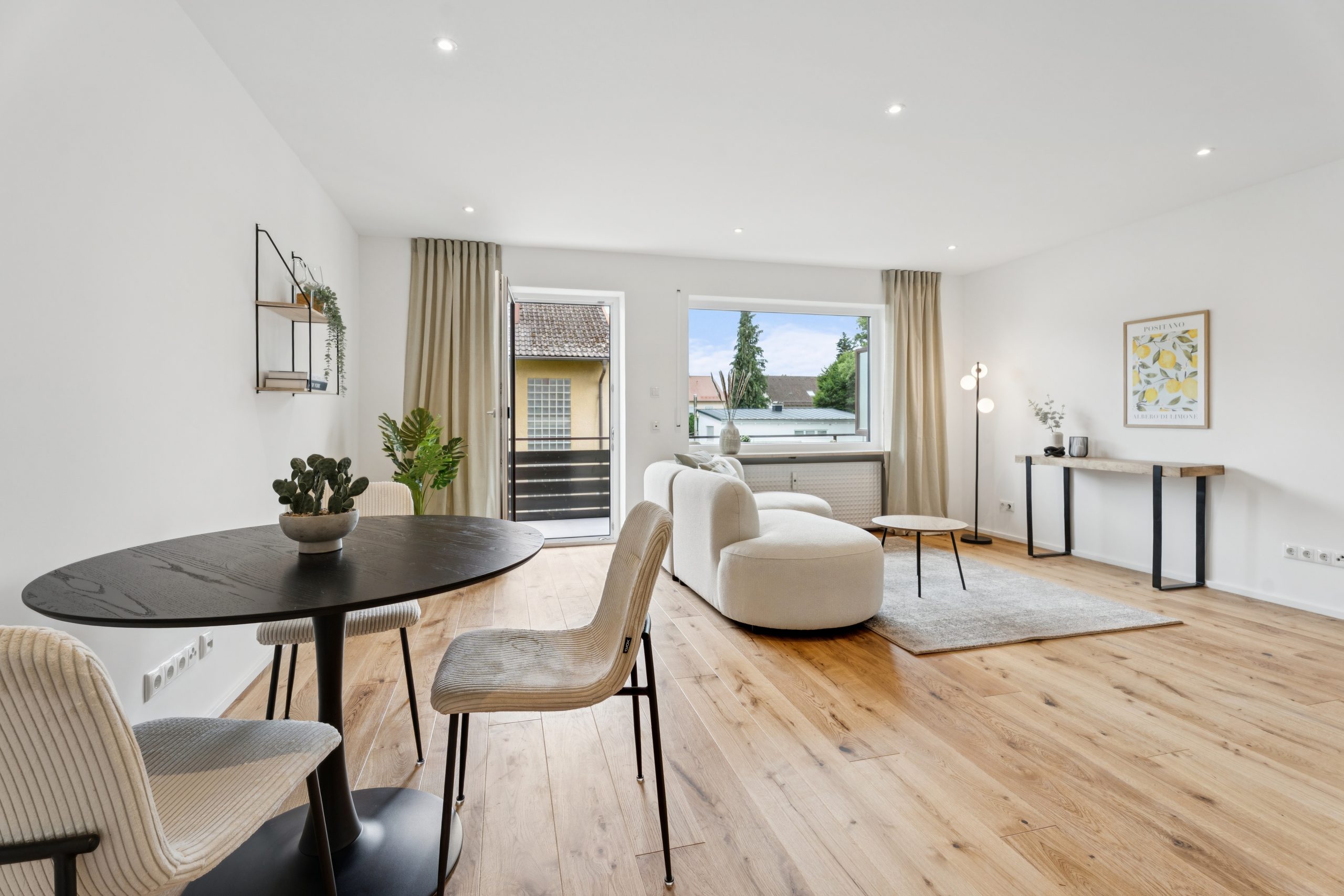 Das Home Staging sollte die hochwertige Sanierung betonen und die Räume perfekt in Szene setzen.